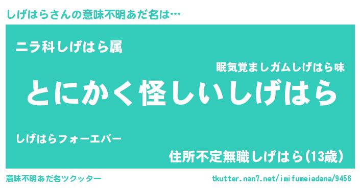 | 男性向けラノベタイトル風あだ名 | 『しげはらの嫁は女の子じゃないと思った?』 |