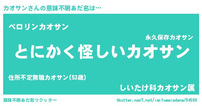 | ヒーロー風カッコイイあだ名 | 『銀牙騎士カオ』『スーパーカオサン』 |