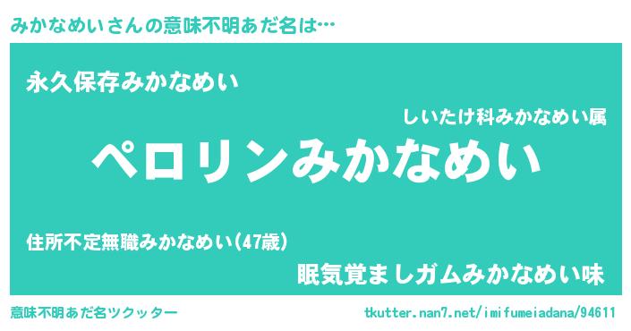 | 胡散臭い通販商品みたいなあだ名 | 『必ず成功する霊験あらたかなお札…その名も「みかなめい」』 |