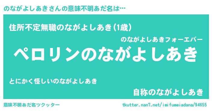 | 男性向けラノベタイトル風あだ名 | 『うちののながよしあきが世界を掌握している!』 |