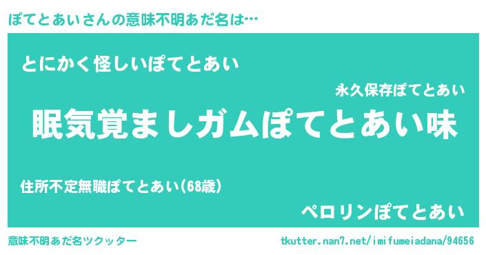 | ヒーロー風カッコイイあだ名 | 『慈愛の使者ぽてとあい』『天弓騎士ポテ』 |