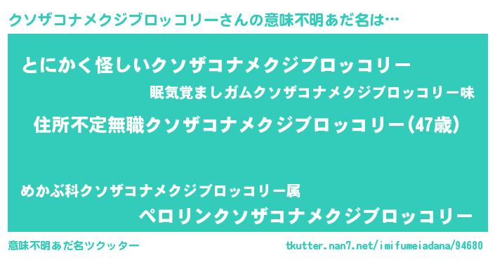 | 欧米人風あだ名 | 『ダレノガレクソザコナメクジブロッコリー』 |