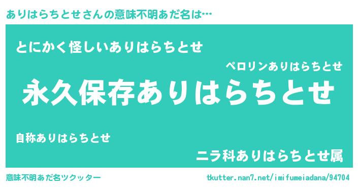 | ヘコむあだ名 | 『ありはらちとせ(遠い目)』『ありを』 |
