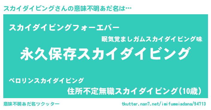 | 伝説のあだ名 | 『聞きしに勝る吟遊詩人スカイダイビング』 |