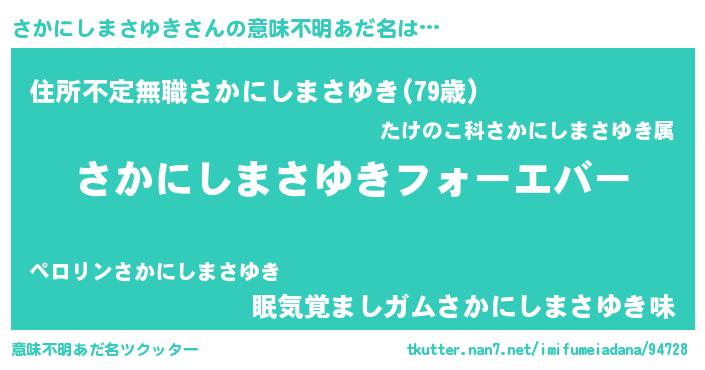 | ファンタジー風あだ名 | 『エターナルサカニシマサユキー』 |