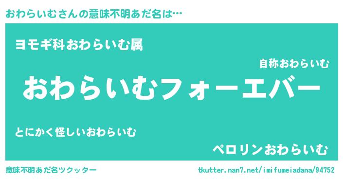 | ポケモン風あだ名 | 『オワラダネ』『メロオッワ』 |