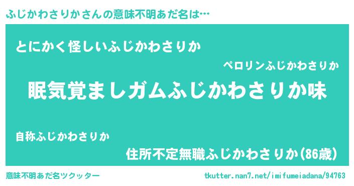 | ヒーロー風カッコイイあだ名 | 『慈愛の使者ふじかわさりか』 |
