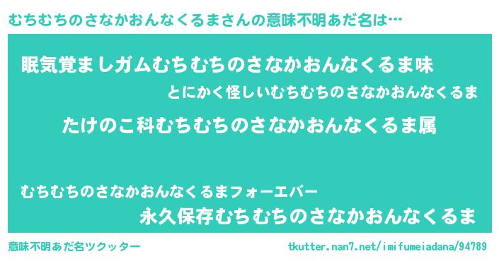 | ヘコむあだ名 | 『むちむちのさなかおんなくるま(小並感)』 |
