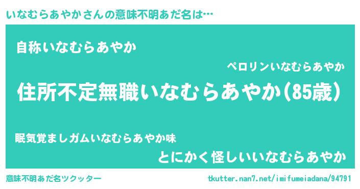 | 伝説のあだ名 | 『孤高の遊び人いなむらあやか』 |