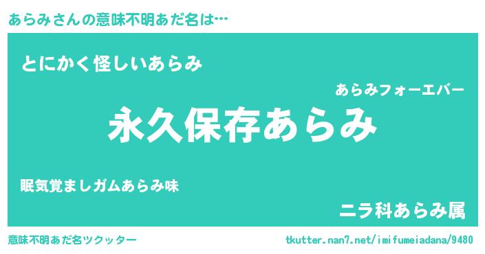 | ヘコむあだ名 | 『あらみ(遠い目)』『あらお』『牛乳』 |