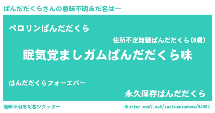 | 欧米人風あだ名 | 『ダニエルぱんだだくら』 |