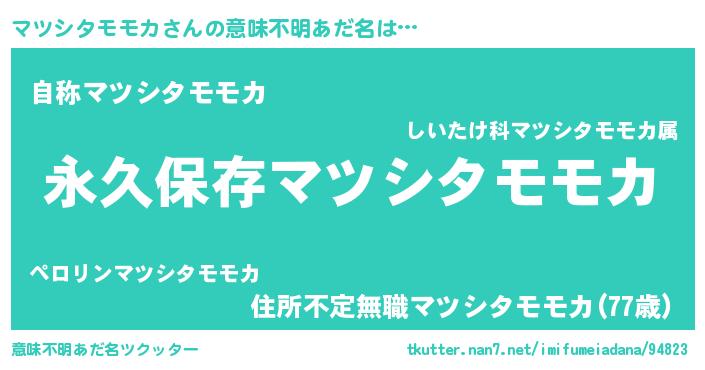 | ヘコむあだ名 | 『マツシタモモカ(小並感)』『マツもー』 |