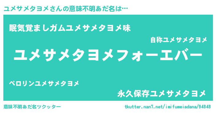 | 伝説のあだ名 | 『秘められし忍者ユメサメタヨメ』 |