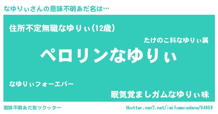| 男性向けラノベタイトル風あだ名 | 『なゆりぃの憂鬱』 |