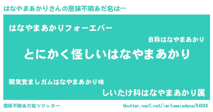 | ポケモン風あだ名 | 『ヒハナヤマアカリ』『ハナヤダネ』 |