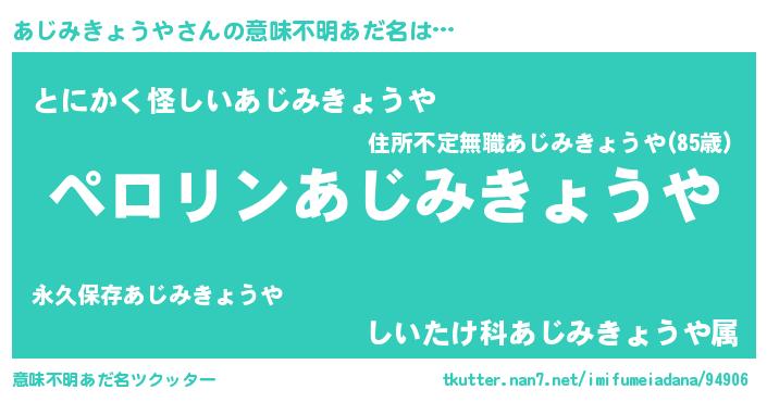 | 男性向けラノベタイトル風あだ名 | 『あじみきょうやの憂鬱』 |