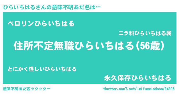 | ヘコむあだ名 | 『ひらにゅー』『ひらいちはる(小並感)』 |