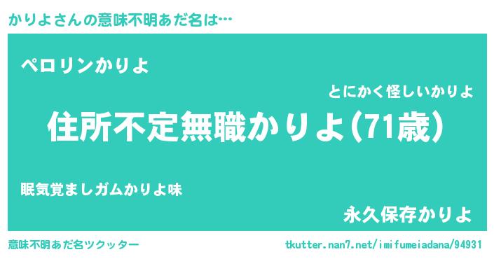 | 男性向けラノベタイトル風あだ名 | 『この素晴らしい世界にかりよを!』 |