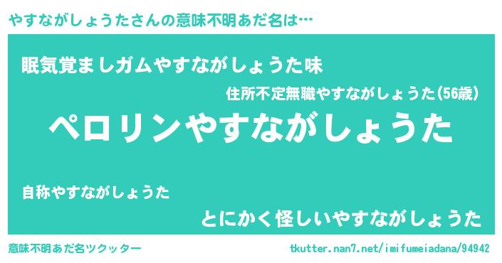 | ヒーロー風カッコイイあだ名 | 『スーパーヤスナガショウタ』 |