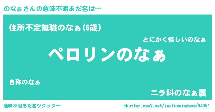 | 男性向けラノベタイトル風あだ名 | 『うちののなぁが世界を掌握している!』 |
