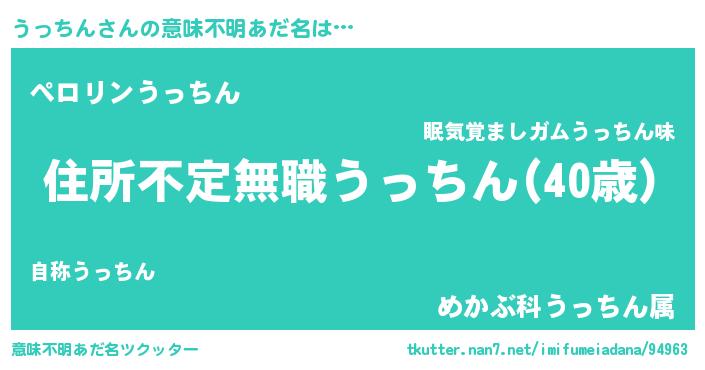 | 男性向けラノベタイトル風あだ名 | 『この素晴らしい世界にうっちんを!』 |