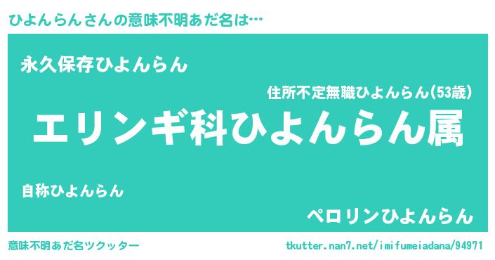 | 料理風あだ名 | 『ひよんらんごはん』 |