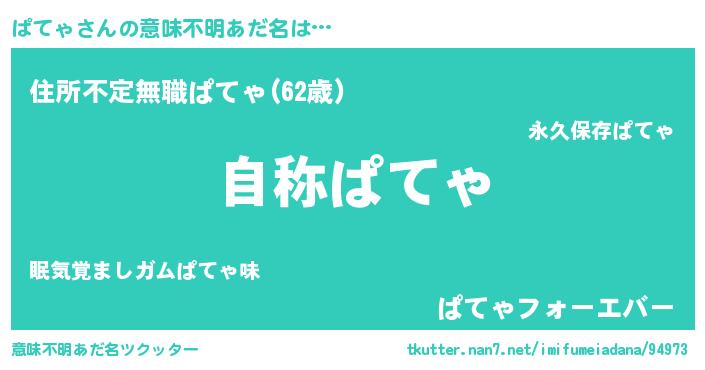 | 男性向けラノベタイトル風あだ名 | 『魔法科高校のぱてゃ』 |