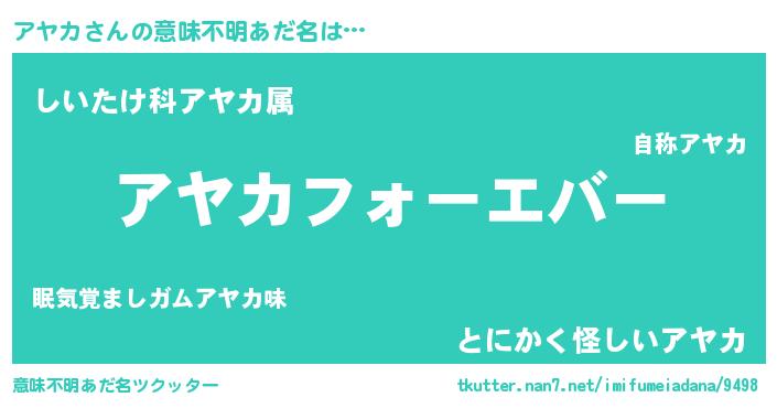 | ファンタジー風あだ名 | 『エターナルアヤカー』『ゼアヤトゥ』 |