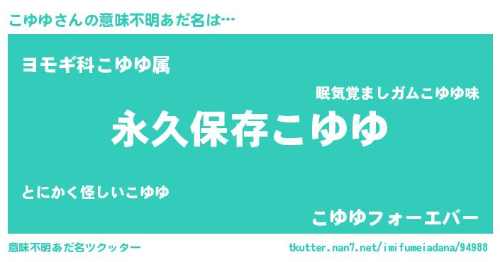 | ヒーロー風カッコイイあだ名 | 『ネオコユユ』『ウルトラこゆゆマン』 |