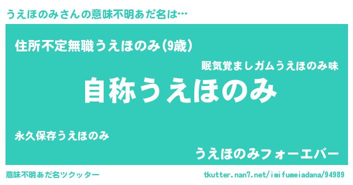 | 欧米人風あだ名 | 『うえほのみ・ステッグマイヤー』 |
