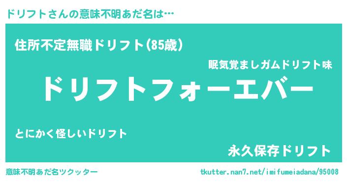 | ヒーロー風カッコイイあだ名 | 『ウルトラドリフトマン』『仮面ドリダー』 |