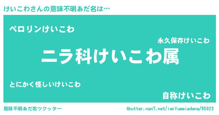 | ヘコむあだ名 | 『けいにー』『けいこわ(笑)』『牛乳』 |