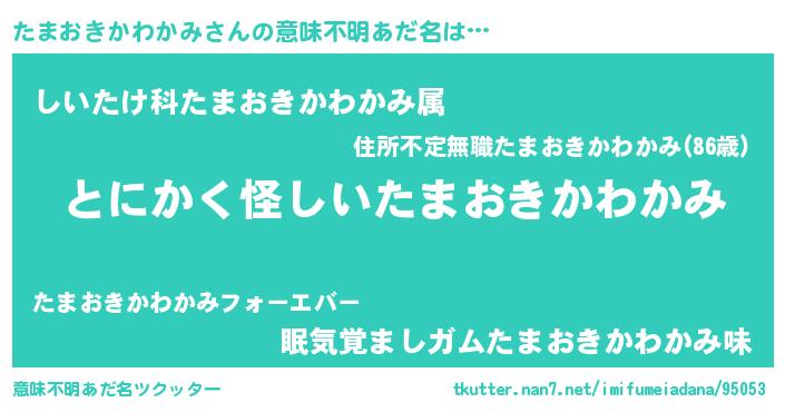 | 女子向けラノベタイトル風あだ名 | 『たまおきかわかみは平凡を望む』 |