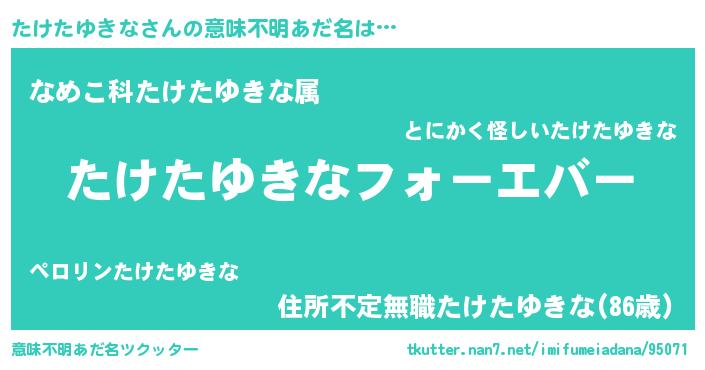 | 料理風あだ名 | 『たけたゆきなの炊き込みご飯』 |