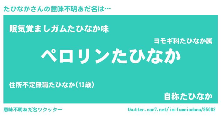 | ヒーロー風カッコイイあだ名 | 『スーパータヒナカ』『究極戦士タヒナカ』 |