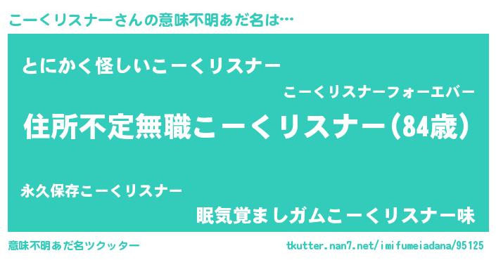 | 男性向けラノベタイトル風あだ名 | 『この素晴らしい世界にこーくリスナーを!』 |