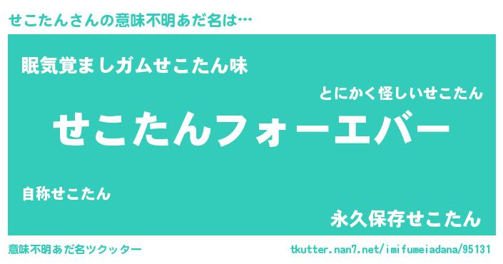 | ヒーロー風カッコイイあだ名 | 『ウルトラせこたんマン』『ネオセコタン』 |