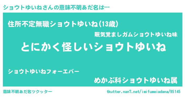 | 欧米人風あだ名 | 『ショウトゆいね・ステッグマイヤー』 |