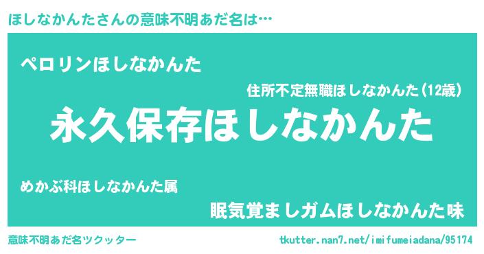 | 胡散臭い通販商品みたいなあだ名 | 『来世でも幸せになれる健康食品…その名も「ほしなかんた」』 |