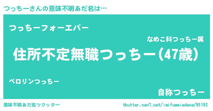 | 男性向けラノベタイトル風あだ名 | 『この素晴らしい世界につっちーを!』 |