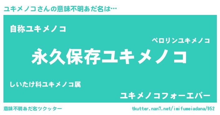 | 男性向けラノベタイトル風あだ名 | 『ユキメノコという概念が存在しない退屈な世界 』 |