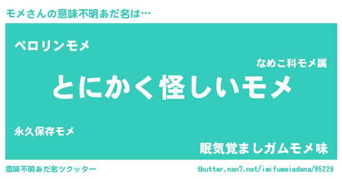 | 女子向けラノベタイトル風あだ名 | 『モメは平凡を望む』『死神モメの再婚』 |