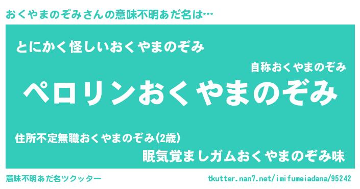 | ポケモン風あだ名 | 『オクチュウ』『ヒオクヤマノゾミ』 |