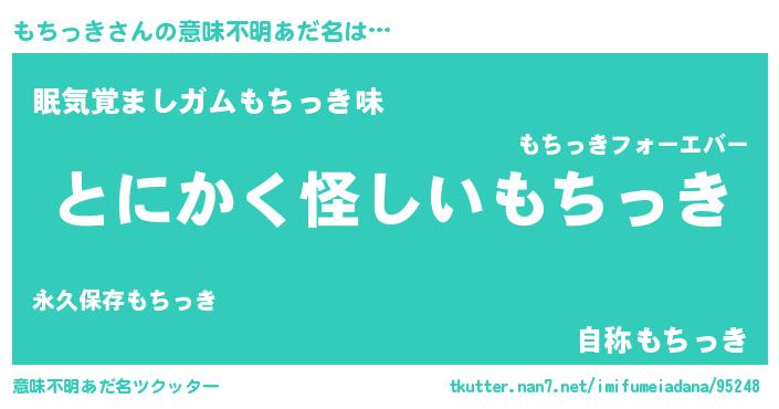 | 男性向けラノベタイトル風あだ名 | 『もちっきの嫁は女の子じゃないと思った?』 |