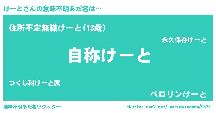 | 女子向けラノベタイトル風あだ名 | 『闇のけーと』『けーと姫と円卓の騎士』 |
