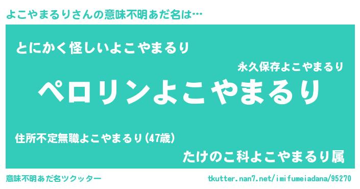 | 胡散臭い通販商品みたいなあだ名 | 『億万長者になれる霊験あらたかなお札…その名も「よこやまるり」』 |