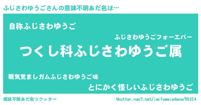 | 男性向けラノベタイトル風あだ名 | 『ふじさわゆうご~年齢イコール彼女いない歴の魔法使い~』 |
