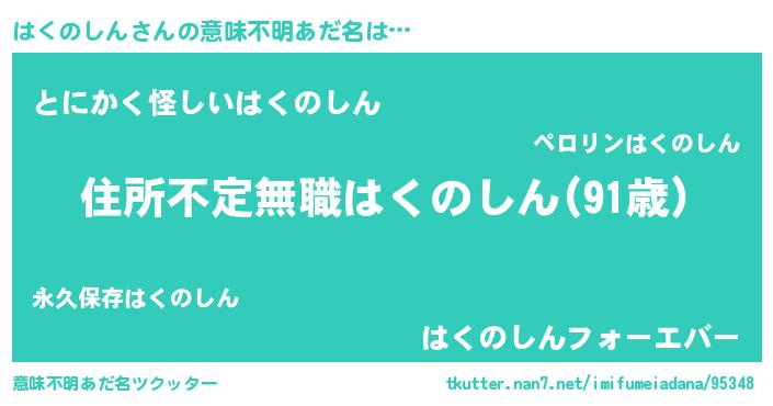 | ピコ太郎風あだ名 | 『ハク十郎』『ピハ史郎』『ハコ六郎』 |