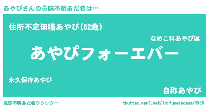 | ファンタジー風あだ名 | 『エターナルアヤピー』『ヴァルアヤーナ』 |
