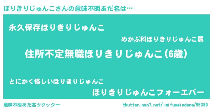 | 男性向けラノベタイトル風あだ名 | 『この素晴らしい世界にほりきりじゅんこを!』 |